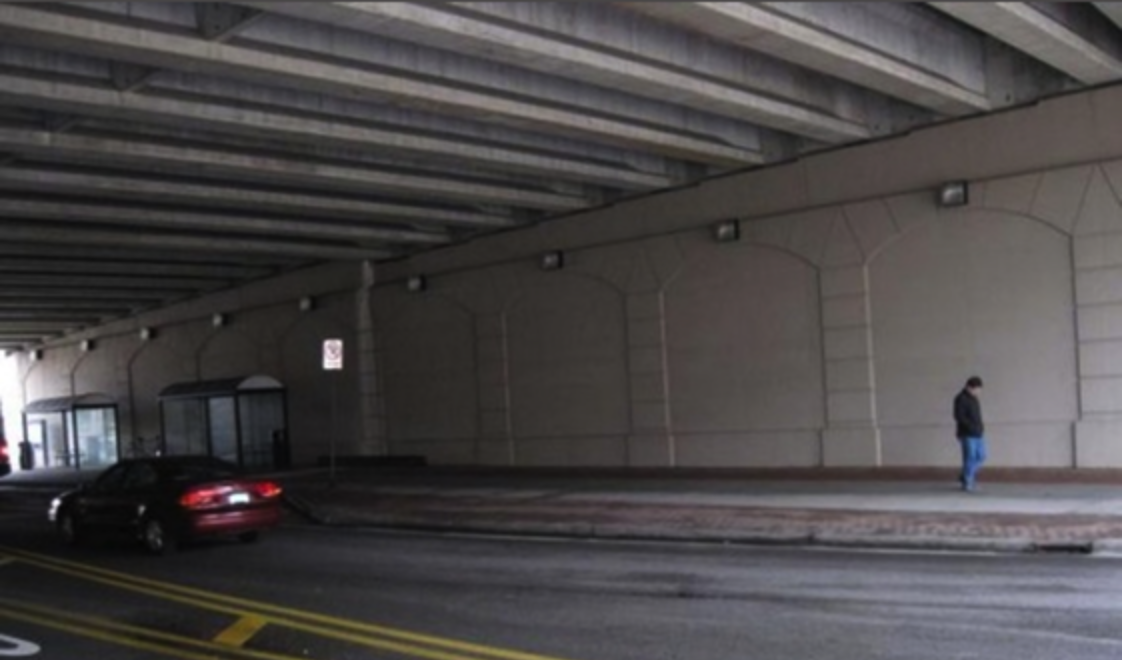 Since it’s actually the color of light reflecting off of an object that determines how a color will be perceived, a simple change can greatly affect the appearance of the color. For In Our Element, Ubiera will use the existing lights in the tunnel and the headlights of passing automobiles to achieve a dramatic effect. His choice of metallic paint will further amplify the effect.