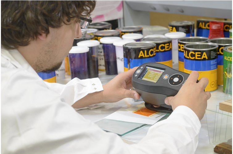 Using a spectrophotometer to evaluate the color accuracy of incoming ink.
