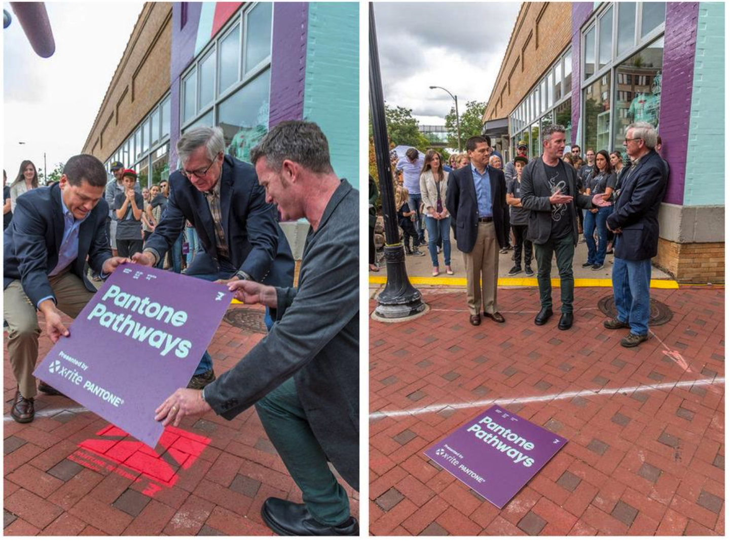 Here I am with Mayor Heartwell and ArtPrize’s Christian Gaines revealing the Pantone Pathways.