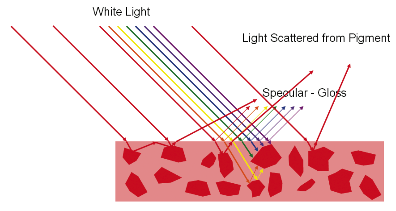 - Type of Colorant –Colorants such as inks, toners, paints, dyes, and pigments all have different reflectance properties. Some pigments even contain special additives like metallic and mica flakes, which change the appearance of color through shimmer and mirror effects, often resulting in different colors depending on the angle of view.