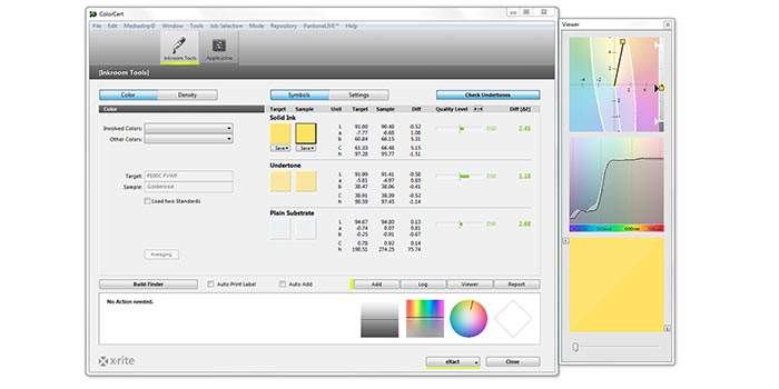 La solution ColorCert Desktop Tools aide le prépresse et la salle d’impression à aligner leurs efforts vers un but commun en utilisant les mêmes profils ICC et CGATS. Si une reformulation est nécessaire, ColorCert connecte le contrôle du processus et le laboratoire d’encres en envoyant directement les mesures de la presse au logiciel InkFormulation.